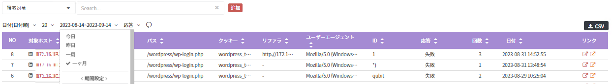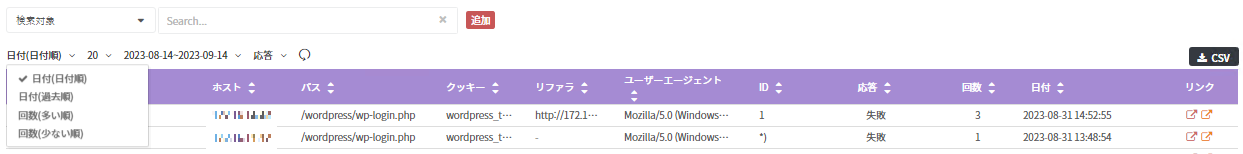 * アカウント奪取フィルターにPath、Hostで登録したサーバーのLogin試行を抽出して提供