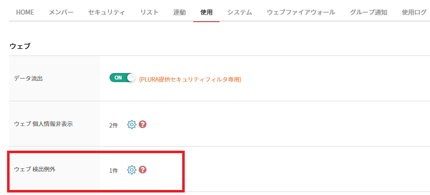 * ウェブ探知例外:全体ログには掲載されますが、探知ログには掲載されないように設定できます。