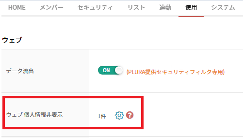 ### 1-1. 管理 > 使用 > ウェブ個人情報非表示 > 設定ボタンをクリックします。 <a href="#id-1-1" id="id-1-1"></a>
