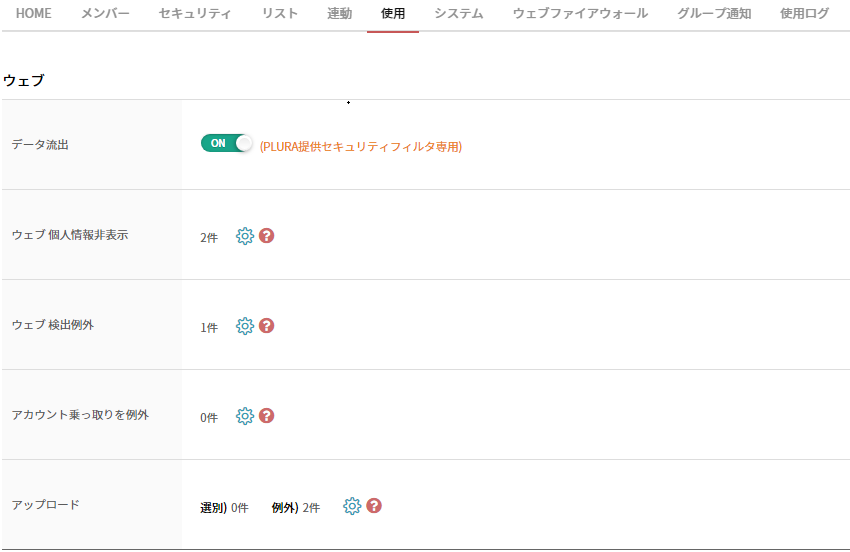 PLURA Forensic 製品ではデータ漏洩設定、ウェブ/ホストアップロード設定機能をサポートしていません。