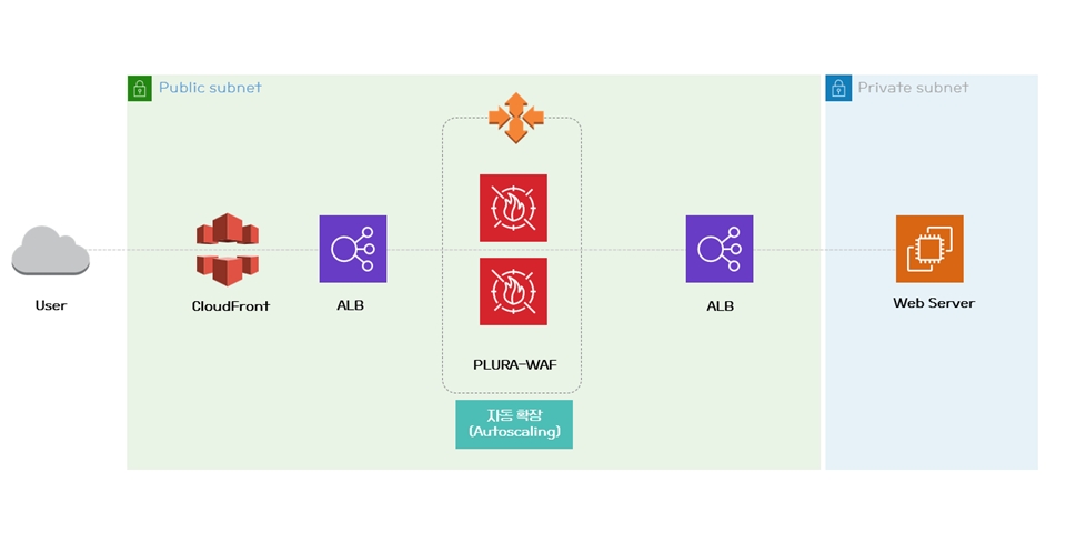 ALB(またはウェブサーバー)間にPLURA-WAFを構成することができます。