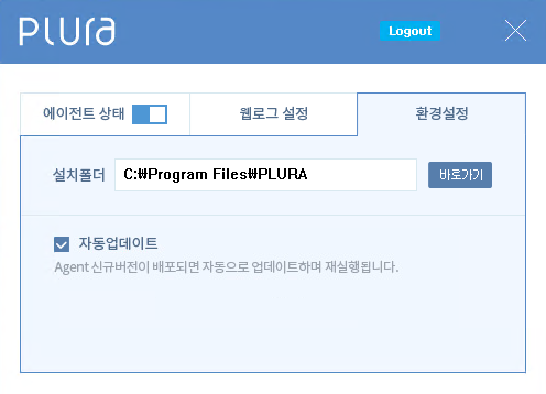 * 바로가기 버튼: PLURA 에이전트가 설치된 경로로 바로 이동할 수 있습니다.