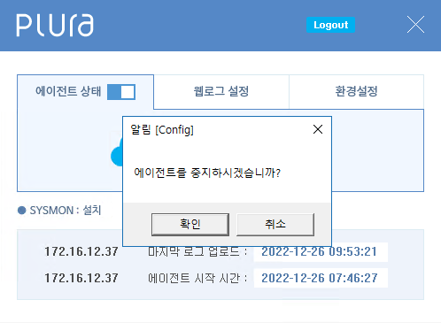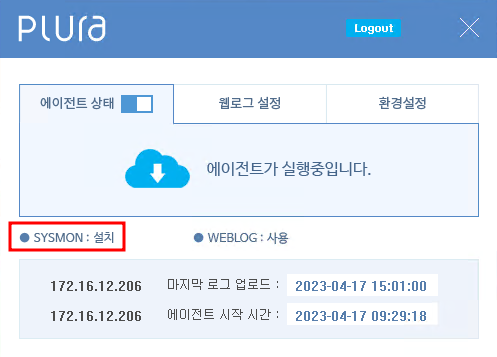 * [Sysmon](https://docs.plura.io/ko/agents/edr/windows/sysmon), [Weblog 설정](https://docs.plura.io/ko/agents/edr/windows#id-8) 및 기타 정보를 확인할 수 있습니다.