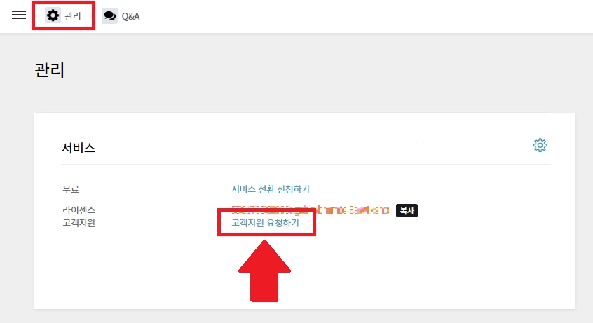 • 메뉴 위치: 관리 > 서비스 > 고객 지원 요청하기