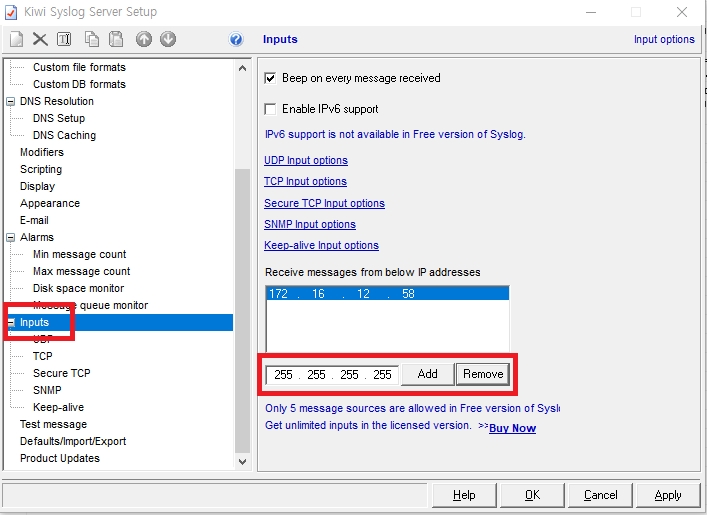 5-2. [수신] Kiwi Syslog 설정