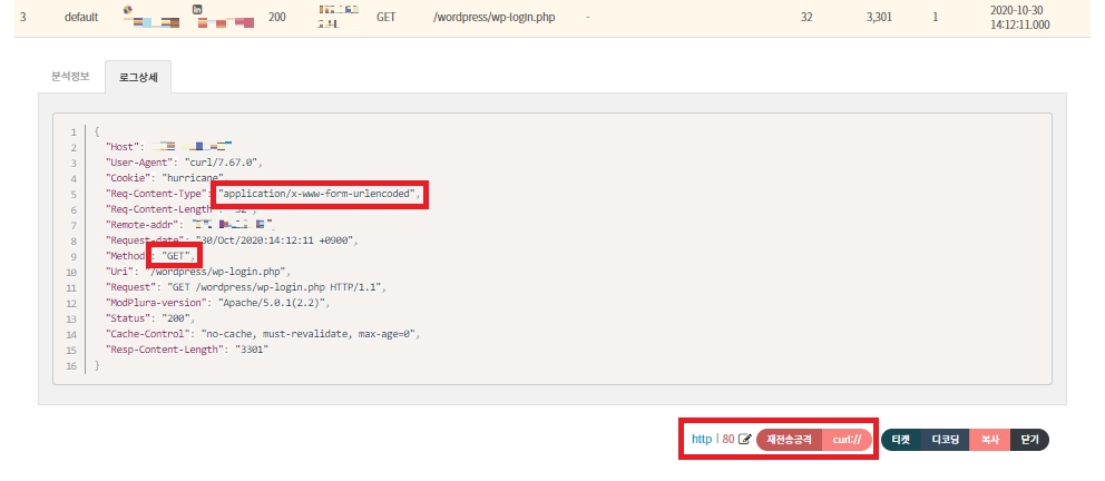 curl:// 버튼을 선택하면, 재전송 공격 쿼리가 자동 복사되어 웹 전송 방식보다 더 다양한 공격 옵션을 제공합니다.