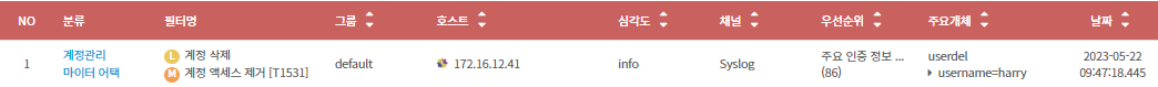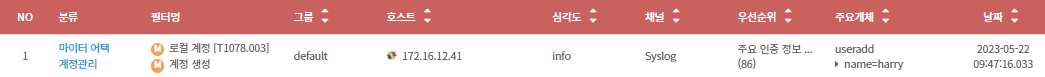 useradd DemoPLURA 호스트보안 탐지 메뉴에서 확인 가능합니다.