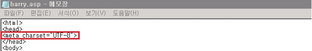 태그를 삽입하여 응답 본문이 UTF-8로 인코딩되도록 설정해야 합니다.