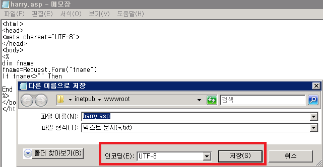 문서를 저장할 때 UTF-8 인코딩을 사용하세요.