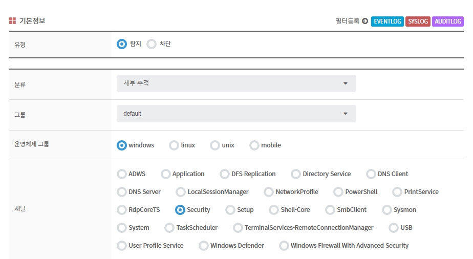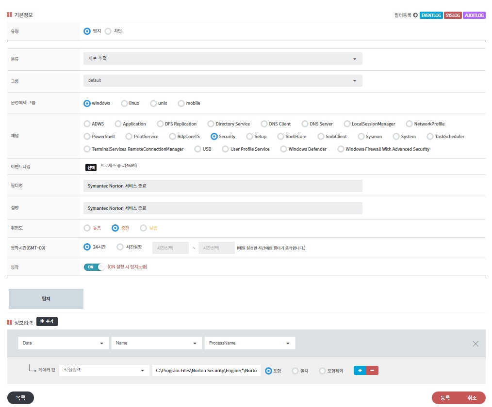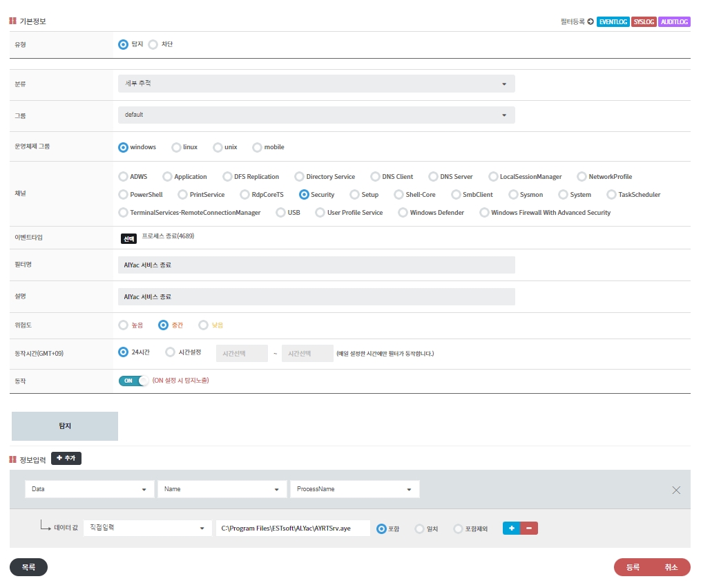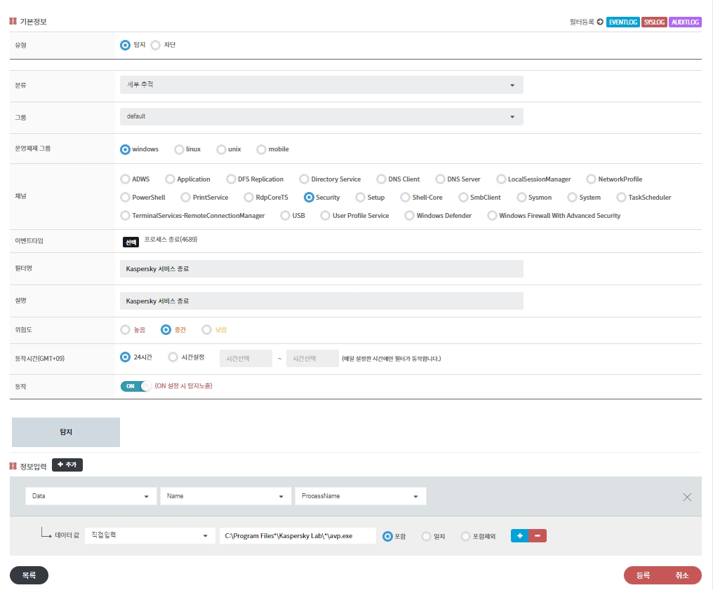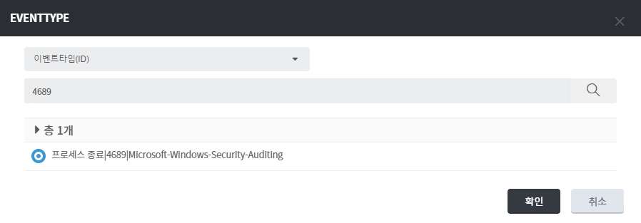 이벤트 타입에서 프로세스 종료(4689) 선택