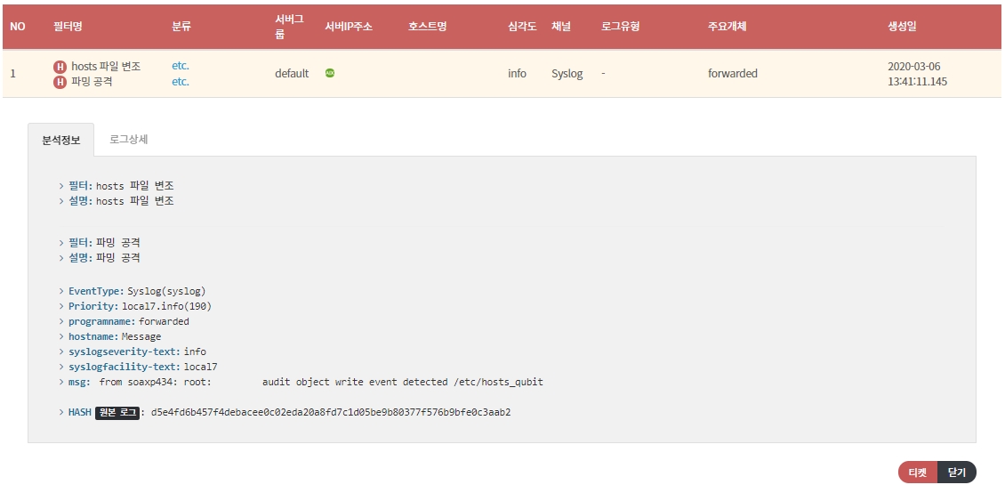 파일에 접근하여 위변조를 시도하는 경우 이를 탐지합니다.