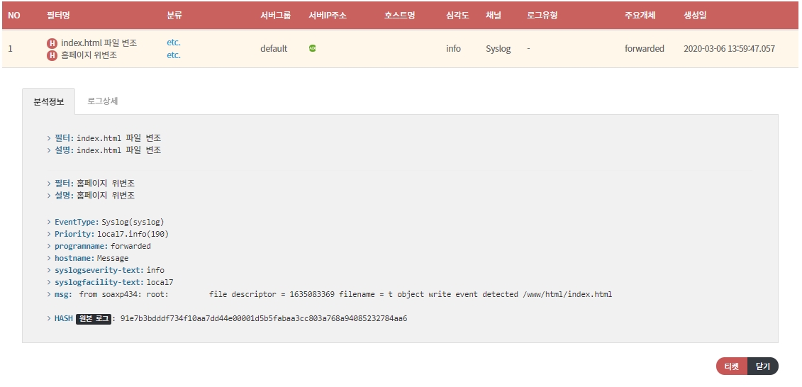 PLURA는 홈페이지 위변조 공격을 탐지할 수 있습니다.