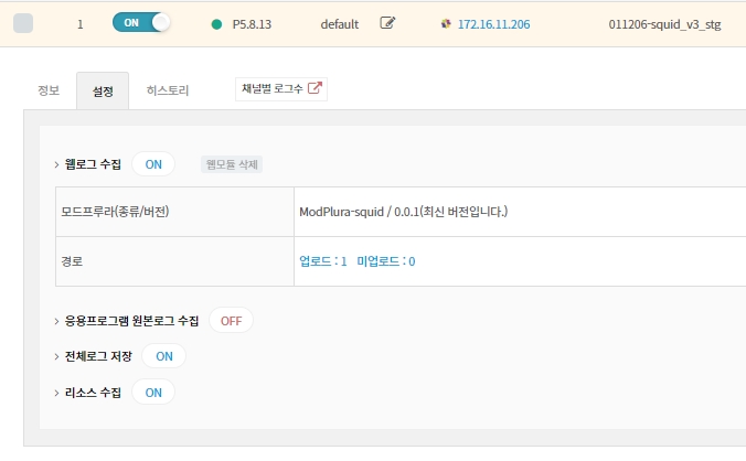 touch /var/log/plura/weblog.logchmod -R 766 /var/log/plura/weblog.logchcon -t squid_log_t /var/log/plura/weblog.log시스템 > 시스템 관리에서 리스트의 호스트를 확장하면 다음과 같이 확인됩니다.