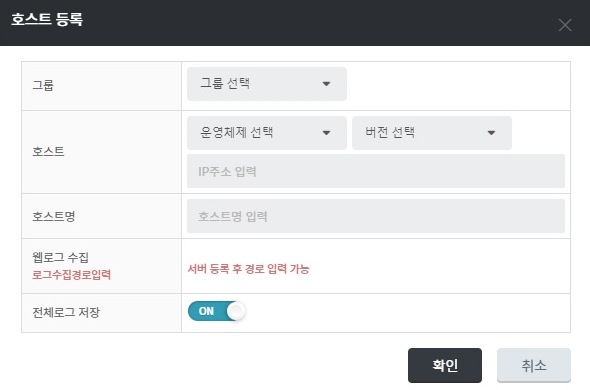 경로: 시스템 > 시스템 관리 > 로그 취합 호스트(부모) 선택 > 수집 환경 선택