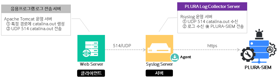 PLURA Log Collector 서버를 사용하면 클라이언트(Web Server)에서 별도의 로그 파일을 생성하지 않고, syslog를 통해 직접 전송할 수 있어 CPU, 메모리 등의 리소스 사용량을 최소화할 수 있습니다.