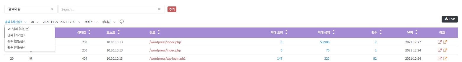 ๋ ์ง ๋ฐ ํ์๋ฅผ ๊ธฐ์ค์ผ๋ก ์ ๋ ฌํ ์ ์์ผ๋ฉฐ, ๊ธฐ๋ณธ๊ฐ์ ์ต์ ์์ผ๋ก ์ถ์ถ๋ URL์ด ํ์๋ฉ๋๋ค.
