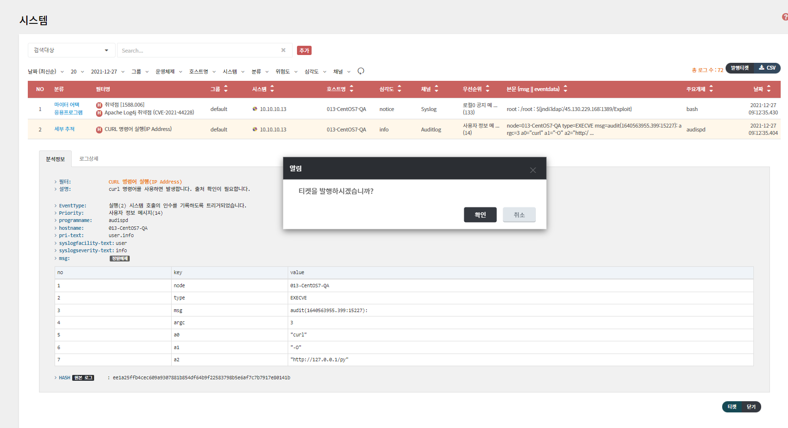 탐지 로그: 상관분석, 호스트, 웹, 네트워크, 계정탈취, 데이터 유출, 마이터 어택, 웹 방화벽, 응용 프로그램, 호스트 보안