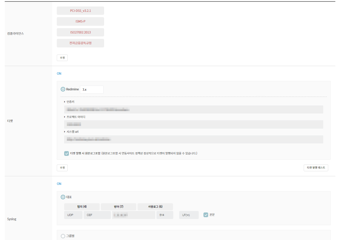 PLURA는 필터 탐지, 탐지 결과, 탐지 알림 등을 외부 서비스와 연동하여 관리할 수 있는 기능을 제공합니다. 컴플라이언스, 티켓, Syslog 등 다양한 외부 시스템과의 연동을 설정하여 데이터를 통합 관리할 수 있습니다.