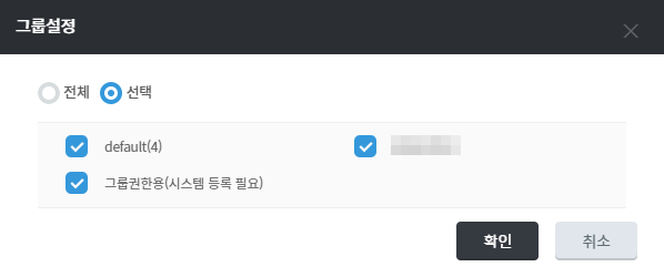 그룹을 전체 또는 특정 그룹으로 지정하여 멤버의 접근 범위를 설정할 수 있습니다.