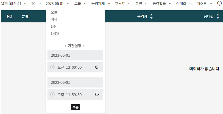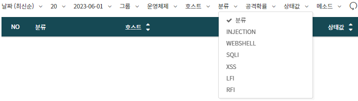탐지 분류별로 로그를 선택하여 정렬할 수 있습니다.