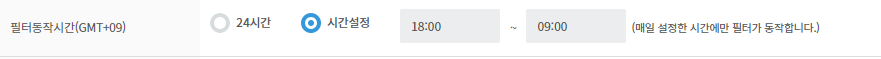8. 필터 동작 시간 설정 (24시간/시간 설정)