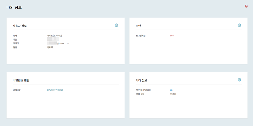 사용자 정보: 회사명, 이름 등 기본 정보를 수정할 수 있습니다.