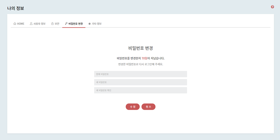 비밀번호 변경: 계정의 비밀번호를 변경할 수 있습니다.