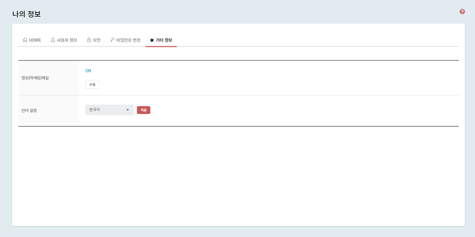 나의 정보를 수정하려면, 우측 상단의 나의 정보 메뉴를 클릭하세요. 이 메뉴에서 다음 항목을 설정할 수 있습니다.