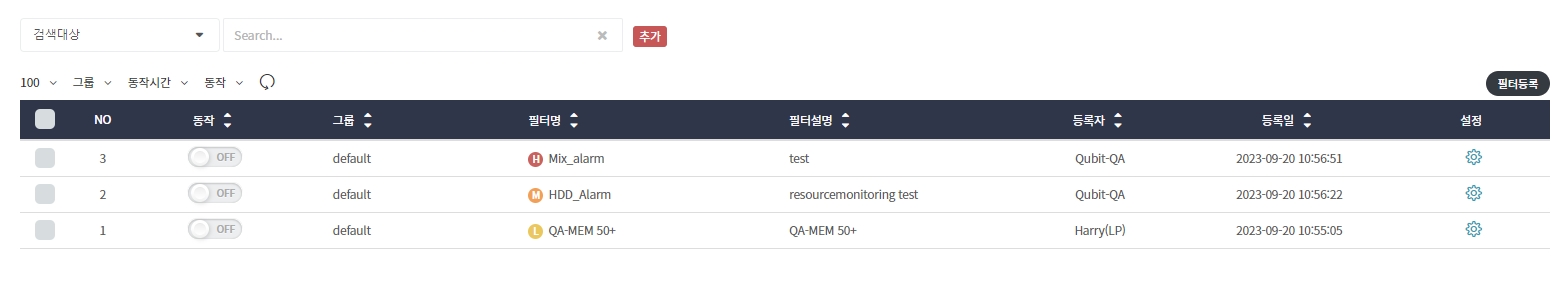 다양한 옵션을 활용하여 등록된 필터를 검색할 수 있습니다.