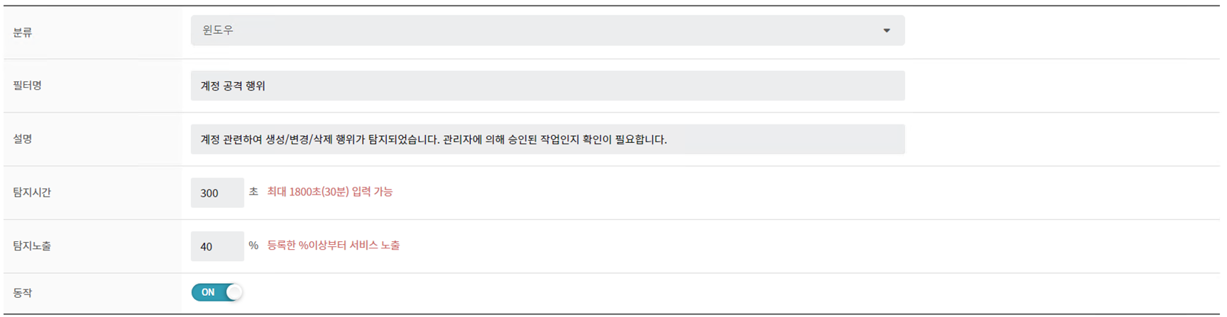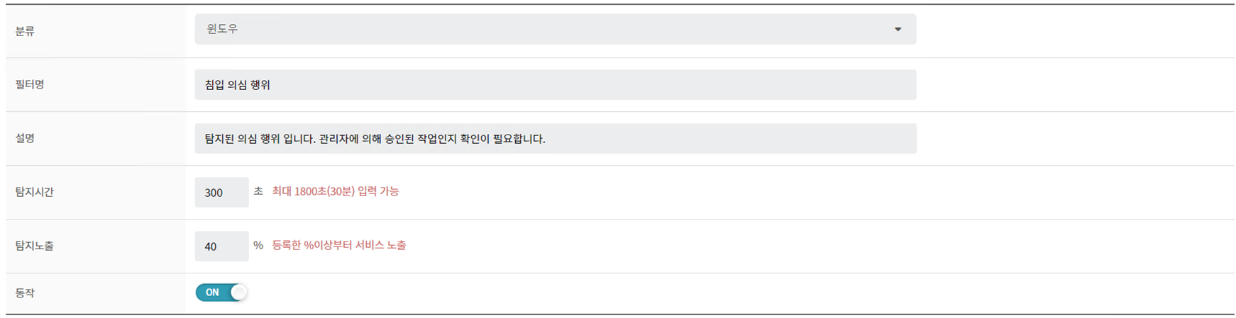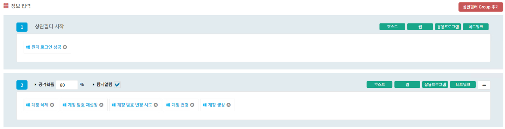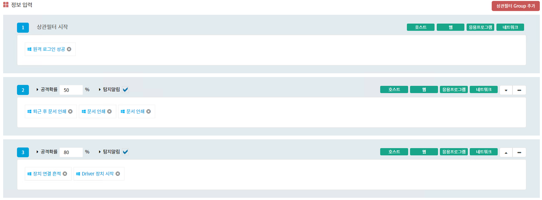 웹과 호스트 필터를 이용해 탐지 시나리오를 등록하여 제공합니다.
