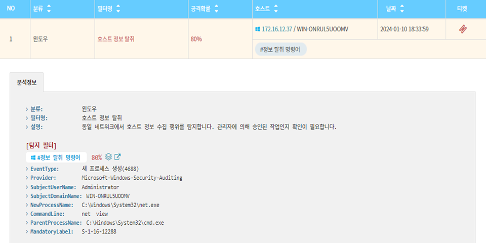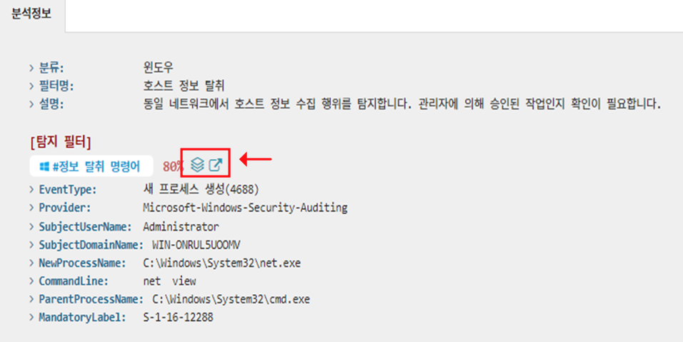 * 마이터 어택 탭: 마이터 필터에 의해 탐지된 경우 관련 정보가 함께 제공