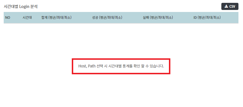 ํต๊ณ > ๋ก๊ทธ์ธ ํ์ด์ง ์๋จ์์ Host์ Path๊ฐ ์ ํ๋์ง ์์ ๊ฒฝ์ฐ, ์๊ฐ๋๋ณ ๋ก๊ทธ์ธ ๋ถ์์ด ๋ ธ์ถ๋์ง ์์ต๋๋ค.