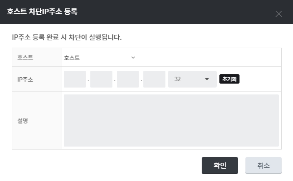 IP 주소 등록 버튼을 클릭하면 설정 팝업이 나타납니다.