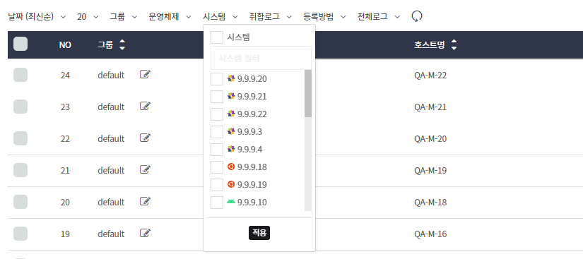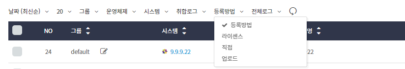 • 라이선스를 통해 등록된 시스템 또는 직접 등록한 시스템을 선택해서 볼 수 있습니다.
