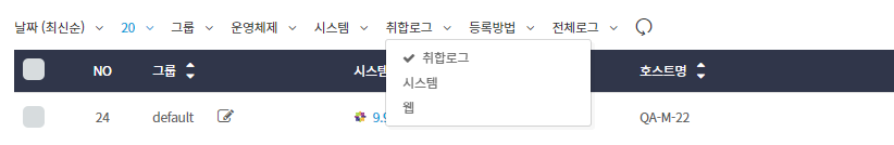 • 모든 취합된 로그를 보거나, 시스템, 시스템/웹으로 분류하여 볼 수 있습니다.
