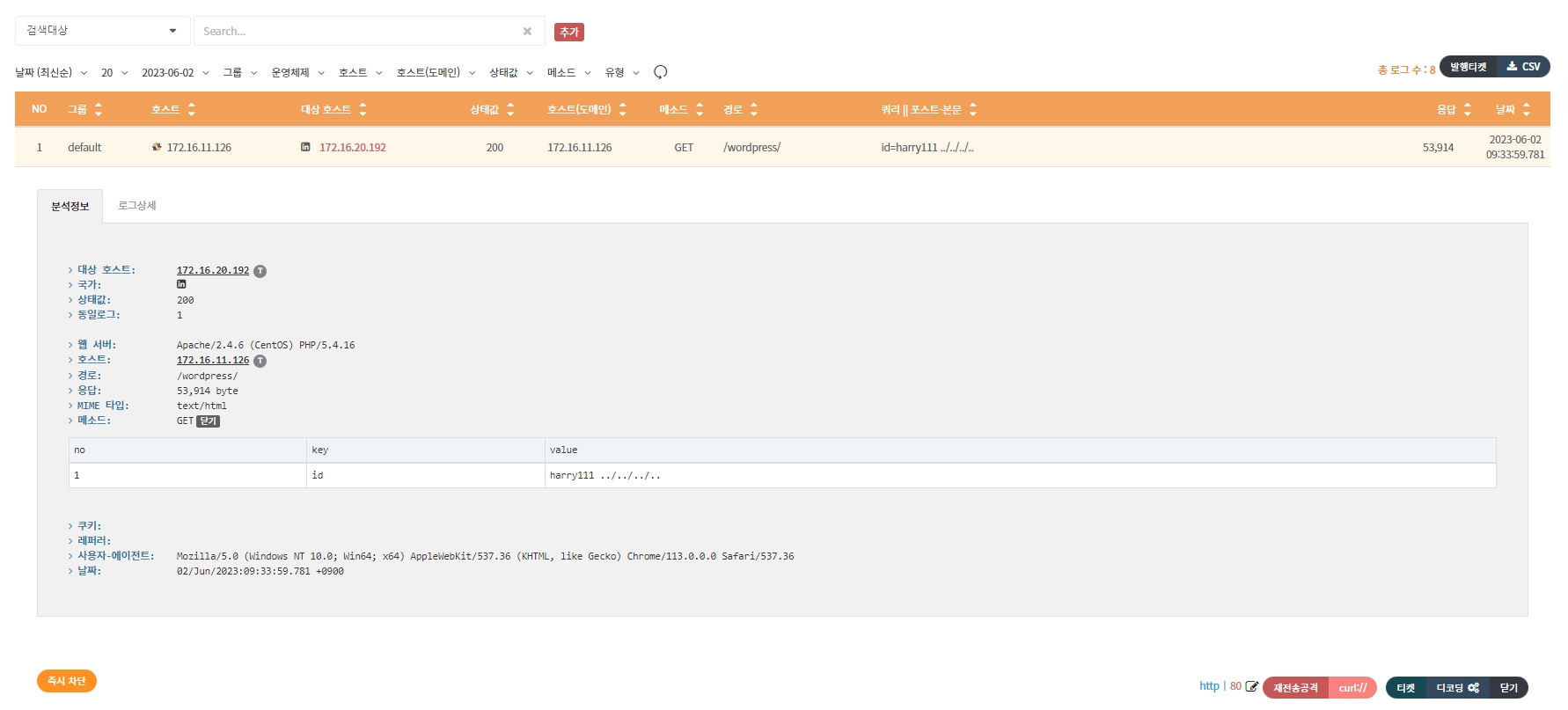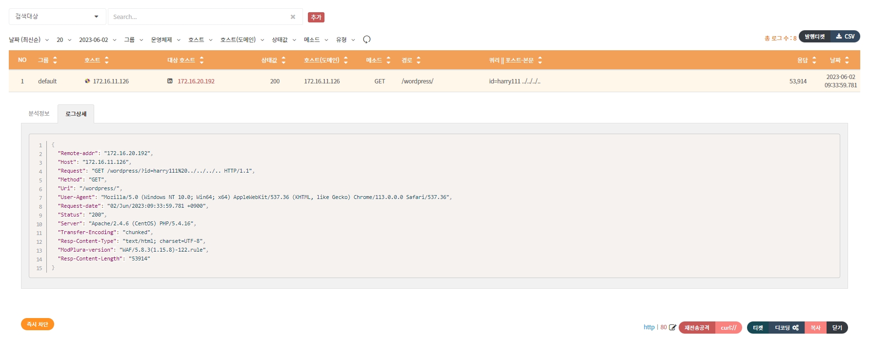 ‘로그상세’ 버튼을 클릭하면 발생된 원본 내용을 확인할 수 있습니다.
