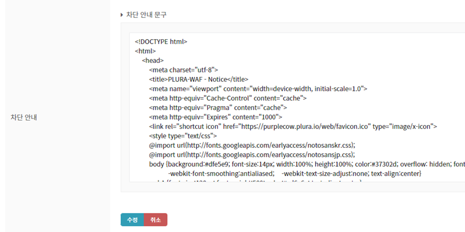 트래픽 제한, 시도 응답 인증, 일정 변경 등을 통해 웹 방화벽 제한 설정이 가능합니다.