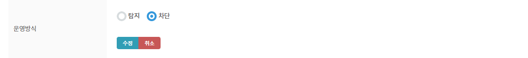 운영 방식: 해당 그룹의 웹 방화벽 운영 방식을 탐지 또는 차단 모드로 설정할 수 있습니다.