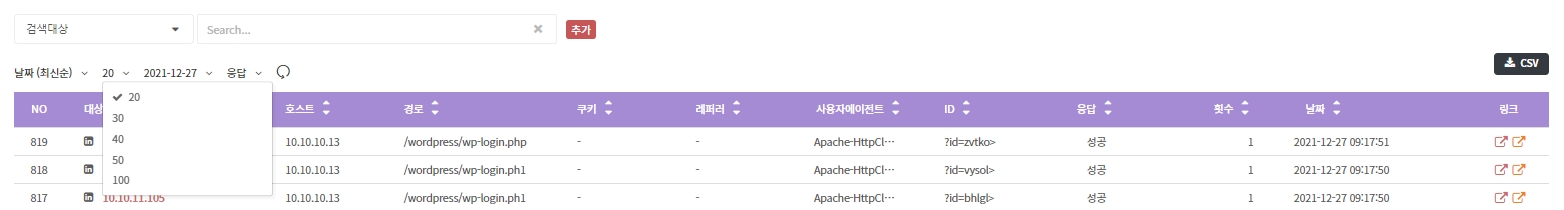 ํ ํ์ด์ง์์ ํ์ํ ๋ก๊ทธ ๋ผ์ธ์ ์๋ฅผ 20~100๋ผ์ธ ๋ฒ์์์ ์ค์ ํ ์ ์์ต๋๋ค.