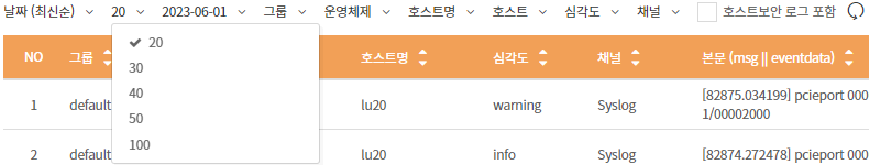 5. 페이지당 로그 라인 수 설정