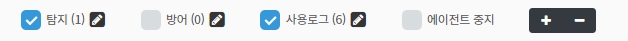 사용 로그: 멤버, 필터, 호스트, 방어, 고객지원, 기타