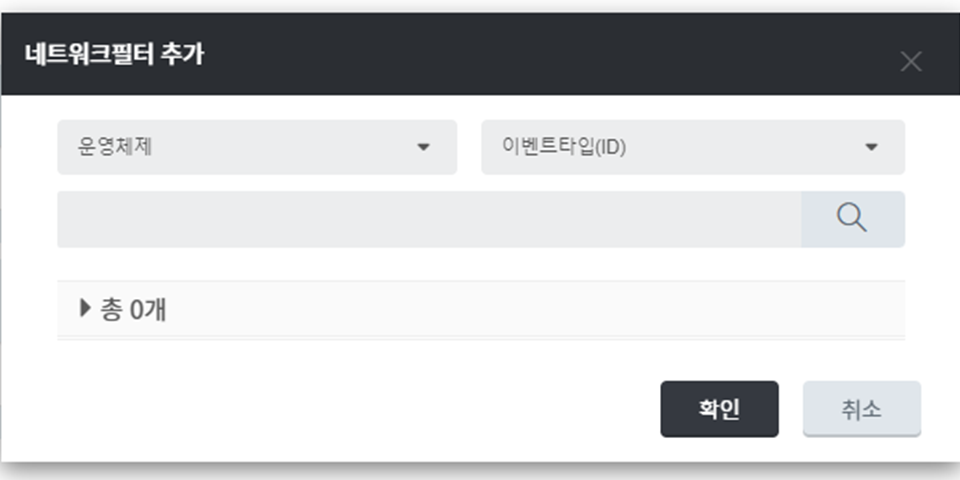 호스트, 웹, 응용프로그램(원본), 네트워크 중 선택하여 필터 등록
