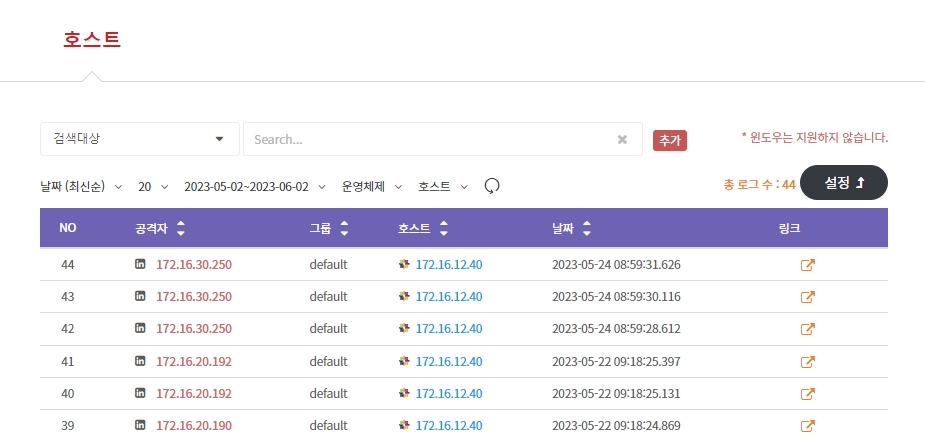 수집된 로그를 운영체제 기준으로 분류하여 확인할 수 있습니다.