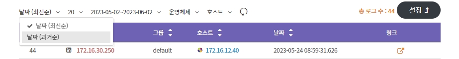 기본 정렬은 최신순으로 설정되어 있어, 가장 최근에 생성된 로그가 상단에 표시됩니다.