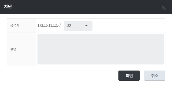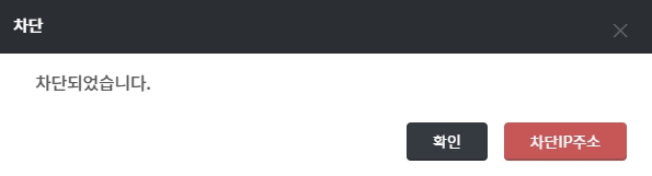 팝업 창에서 차단할 IP 주소와 차단 사유를 입력한 후 확인 버튼을 클릭합니다.