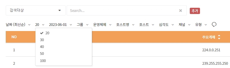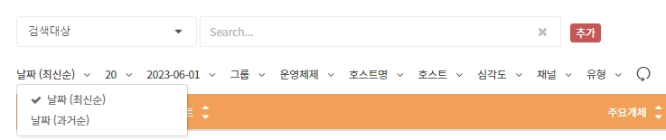 그룹: 시스템 > 그룹관리에서 설정된 호스트의 그룹