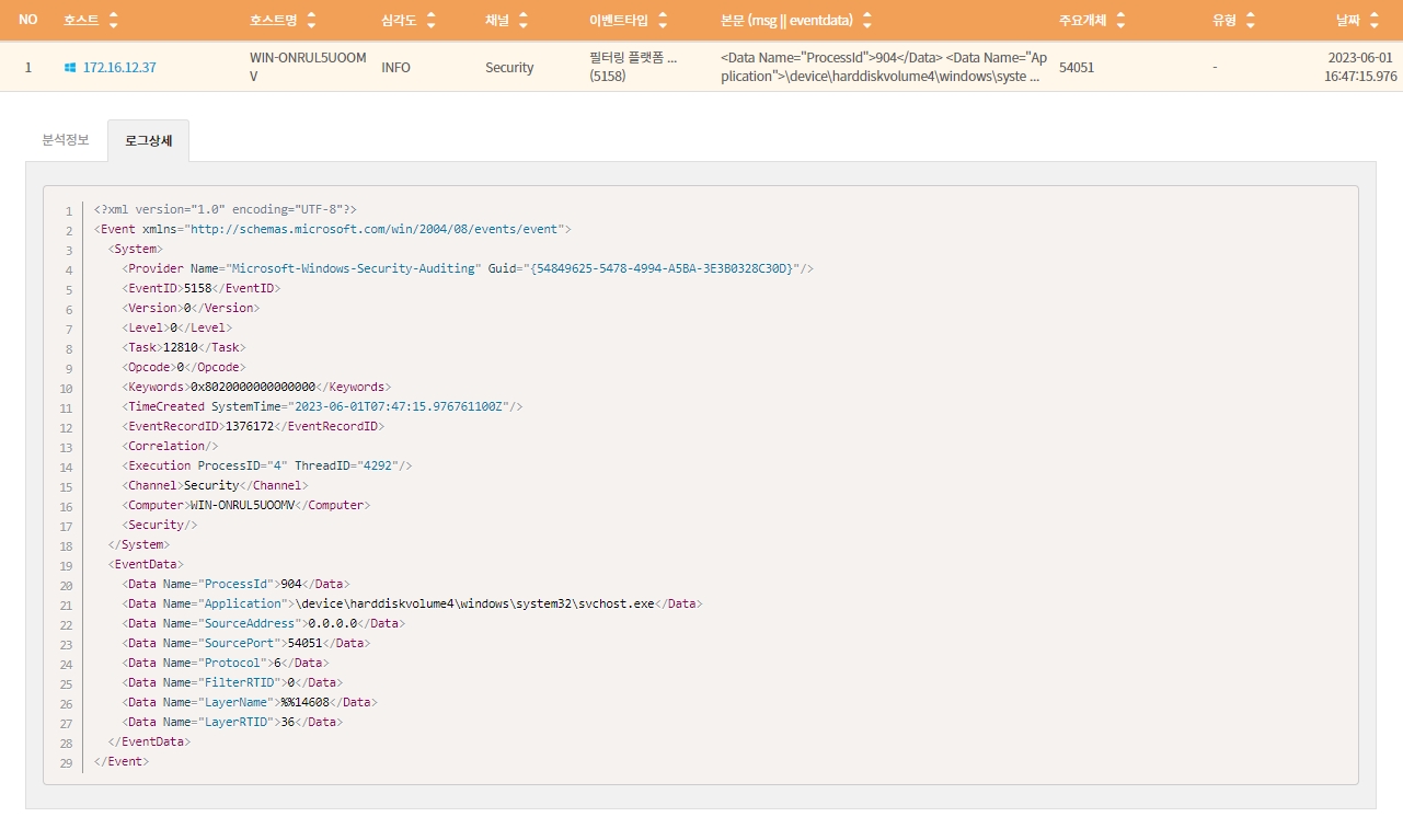 이벤트타입: 시스템이 분류하고 있는 해당로그의 이벤트타입
