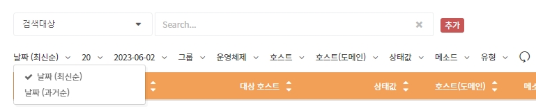 정렬 기준: 생성일 기준의 최신순, 과거순, 요청 크기, 동일 로그 등 다양한 기준으로 정렬할 수 있습니다.