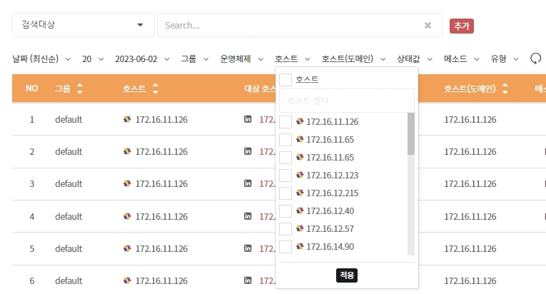 특정 호스트를 선택하여 해당 호스트의 로그를 정렬할 수 있습니다.