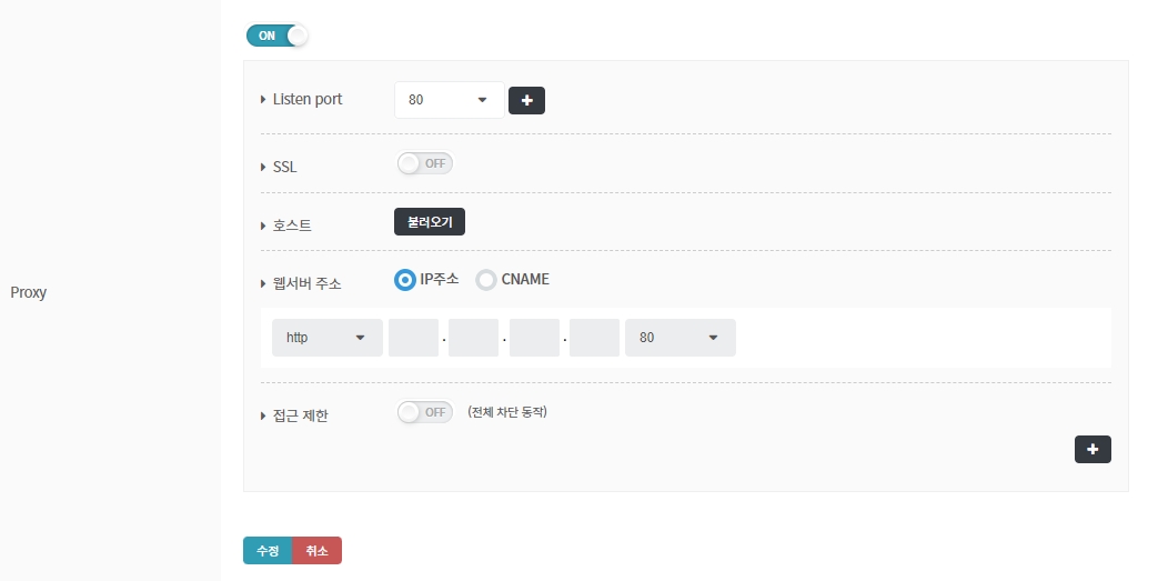 웹 방화벽의 SSL 및 호스트 관련 프록시 설정을 할 수 있습니다.